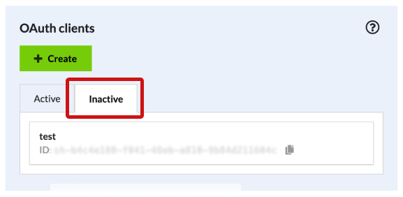 Once an OAuth client has expired, it is moved to a list of inactive clients. Similarly, deleted clients will also appear in this list as inactive clients.