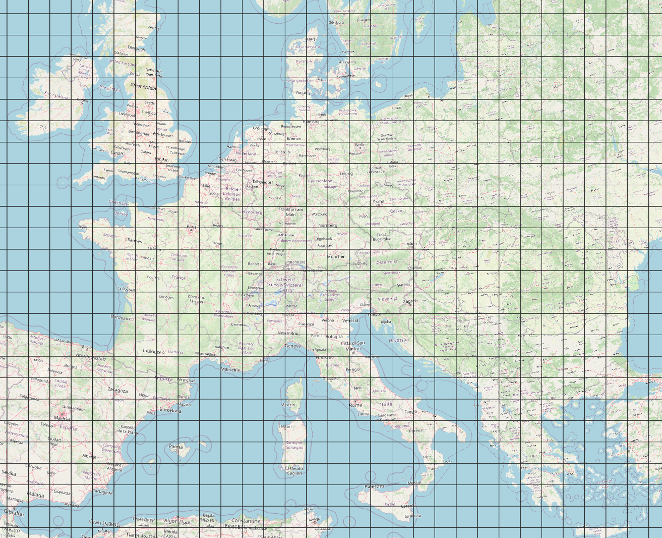 The size of tiles in the grid is also crucial and typically ranges from 20km to 100km. A 100km grid can suffice for relatively light workflows, whereas a 20km grid is more suitable for demanding cases. We opted for 20km tiles in our example because the workflow was particularly demanding. A smaller tile size can also minimize unnecessary processing, especially for irregular target areas like most countries and continents.