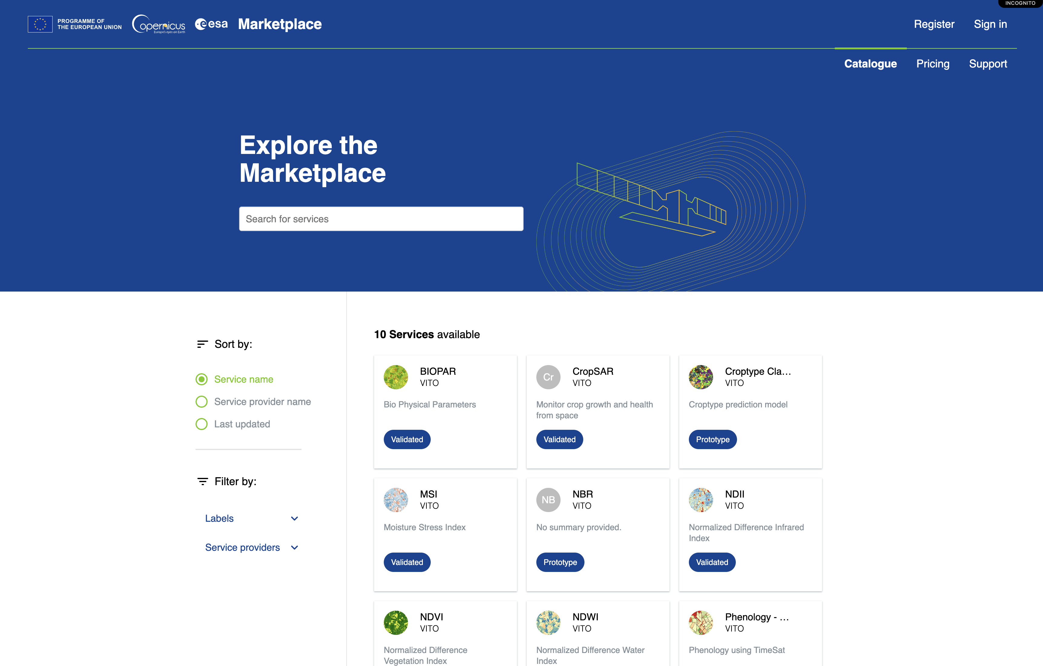 The marketplace showcases a diverse catalogue of EO services from various organisations. These services are classified based on their maturity levels, which indicates the quality and reliability of the service.