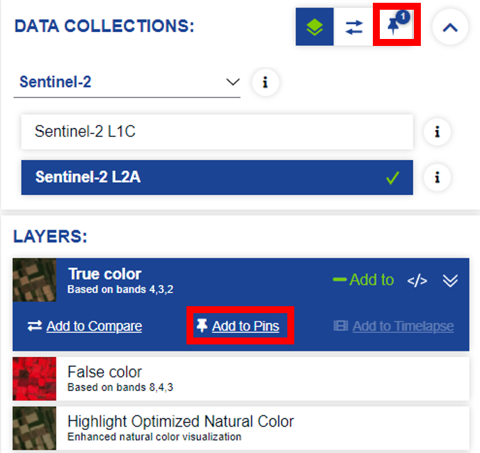 ) next to the Layer name and clicking on Add to Pins. You can find the saved pins by clicking on the (