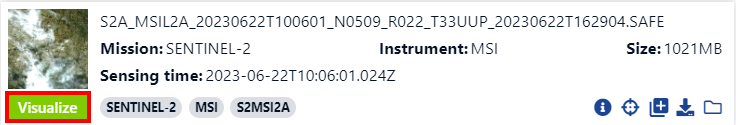 ) in the sidebar or by selecting the visualize button in the results panel on the map. You can open the results panel by clicking on one of the displayed tile footprints on the map.